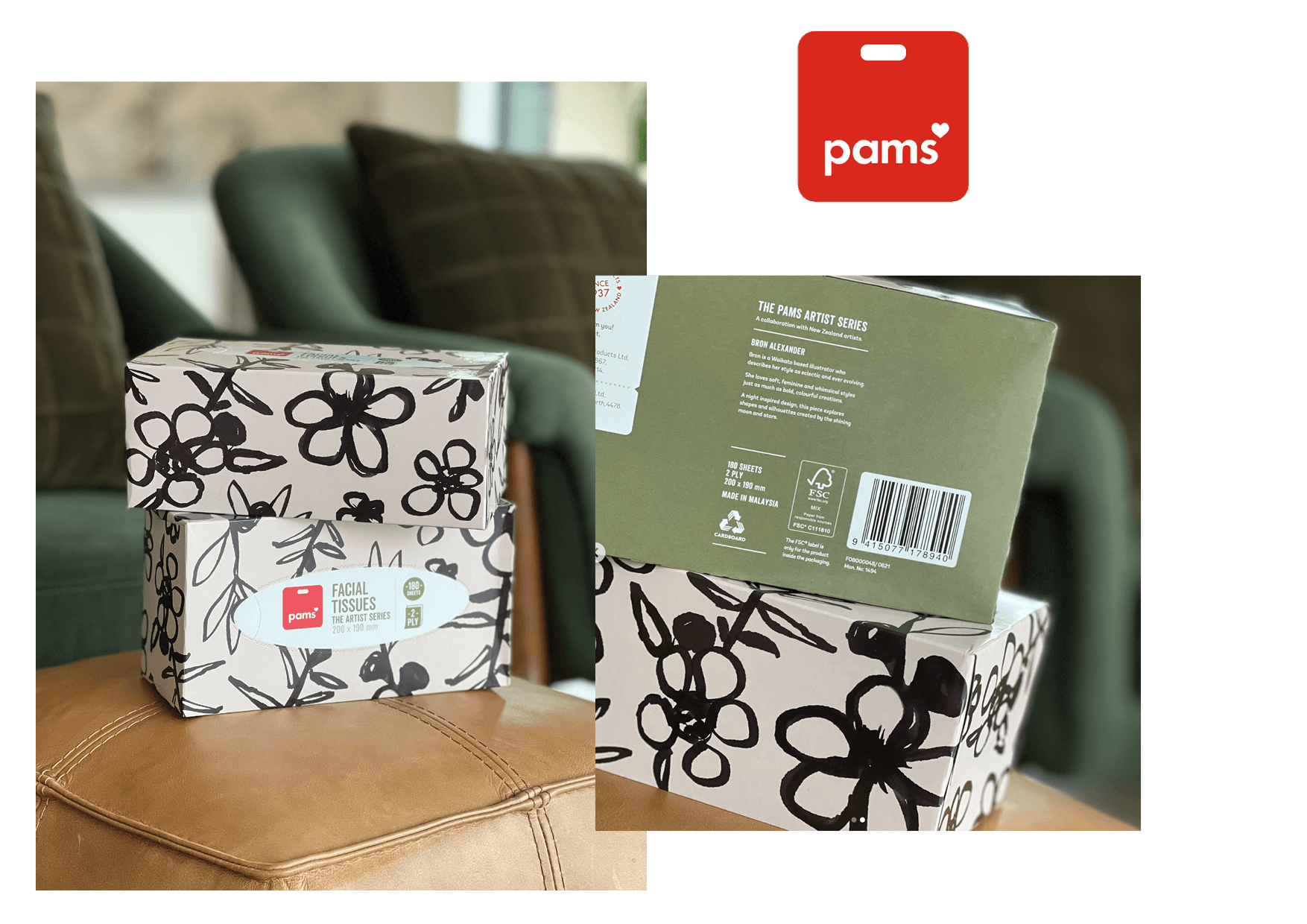 The Pams Artist Series is a collaboration with emerging Kiwi artists and designers to create bespoke pieces for the Pams Facial Tissues packaging under the theme of New Zealand, Our Home.